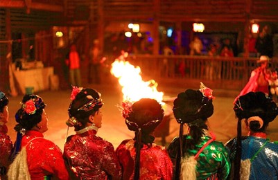 早07:00 -08:00接客人乘BUS前往【泸沽湖】途中游览《千里走单骑》拍摄现场--山路十八湾拍照15分钟,沿途欣赏金沙江河谷奇、秀、险风光、树底大桥、小凉山风光,车辆在丽江到宁蒗途中需要在树底金沙江边停车加水10分钟、沙林梁子停车加水10分钟---12:00左右到宁蒗午餐(40分钟)---观景台远眺泸沽湖全景(20分钟),14:30左右到达泸沽湖---【情人沙滩】(20分钟)--【里格观景台】(20分钟),--尼塞情人树、小落水或者尼塞下午茶、烤鸡(40分钟)自由活动后返回入住酒店。